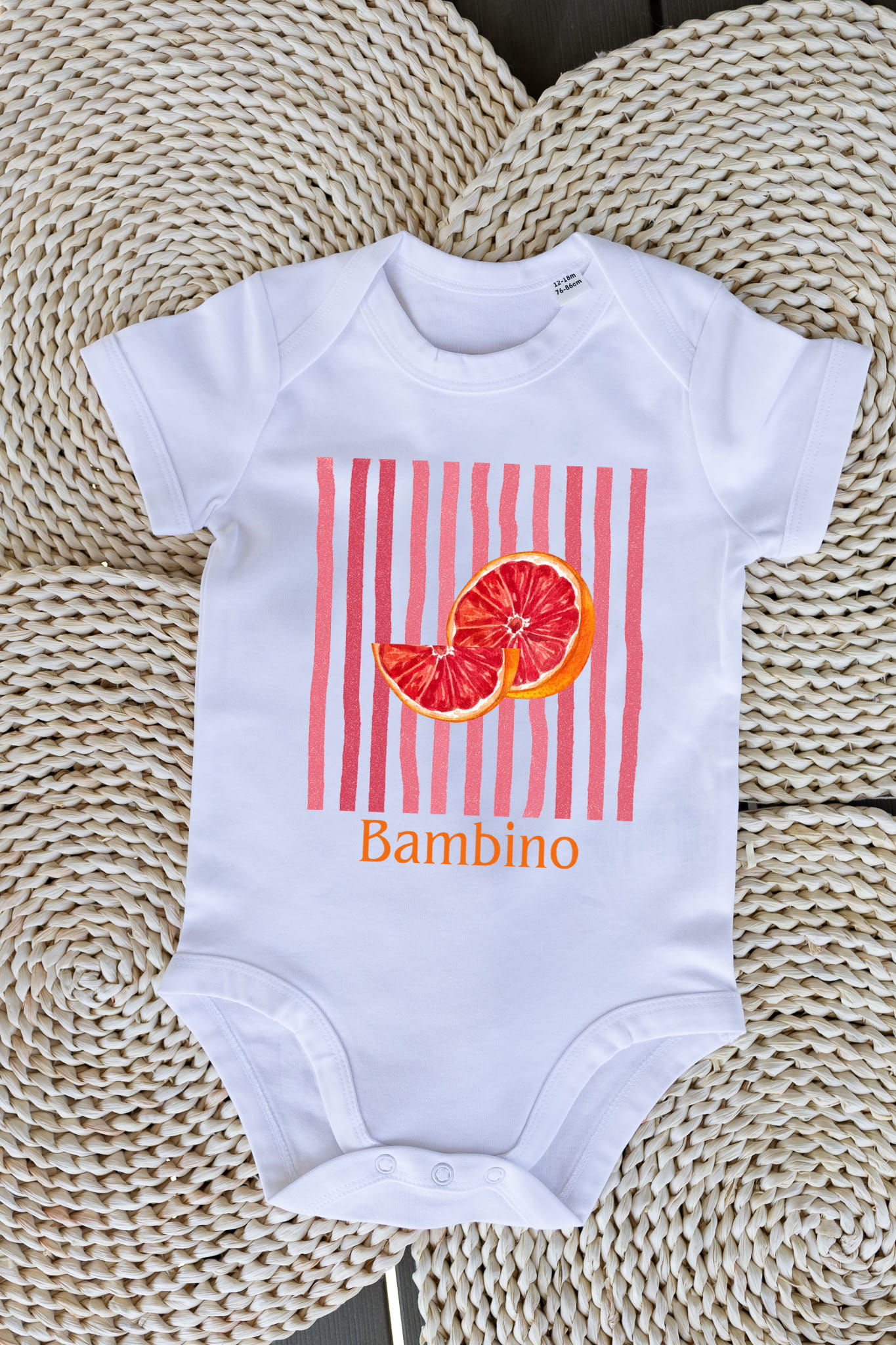 Body niemowlęce z nadrukiem czerwonych pomarańczy i napisem Bambino.