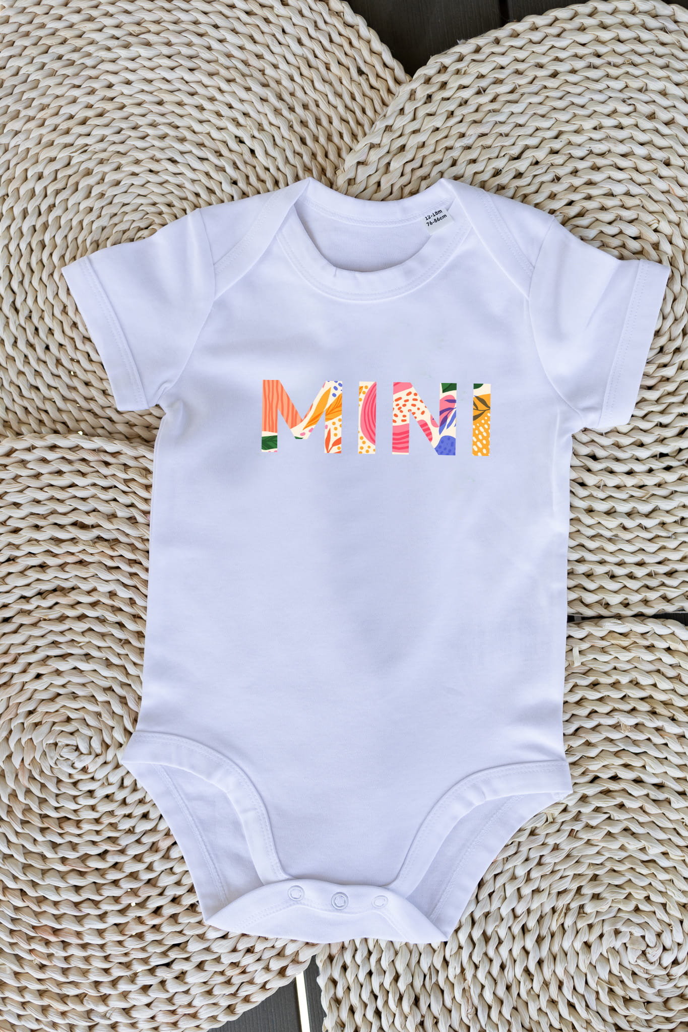Kolorowe body „MINI” to uroczy sposób na wyrażenie dziecięcej bliskości z mamą – przez styl, wygodę i prosty komunikat.