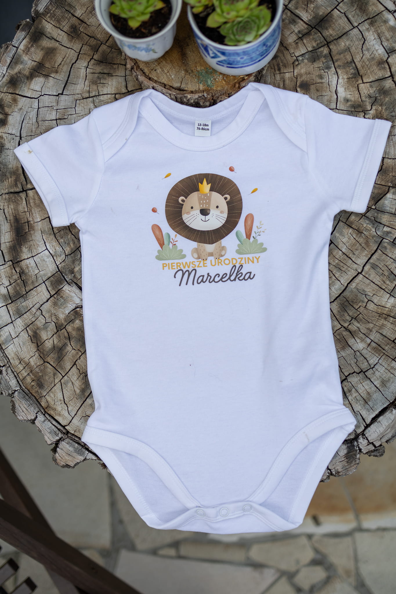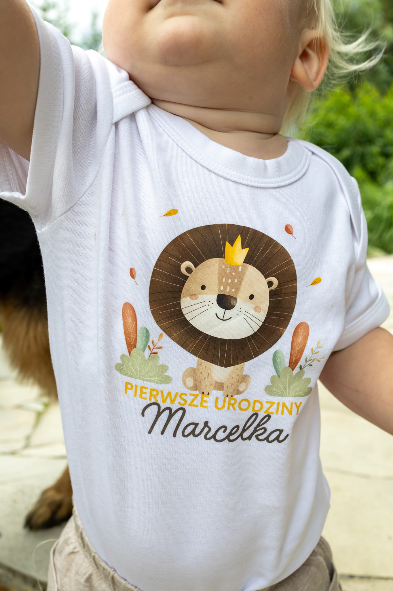 Personalizowana koszulka na roczek z imieniem i lwem to uroczy sposób, by uczcić pierwszy urodzinowy krok malucha. Idealna na tę wyjątkową okazję!
