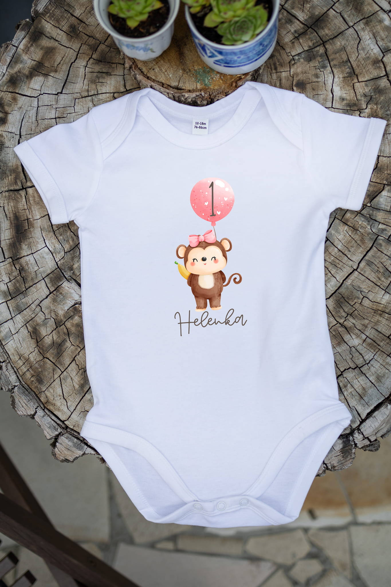 - Personalizowany nadruk z imieniem i zabawną małpką – pamiątka na całe życie
