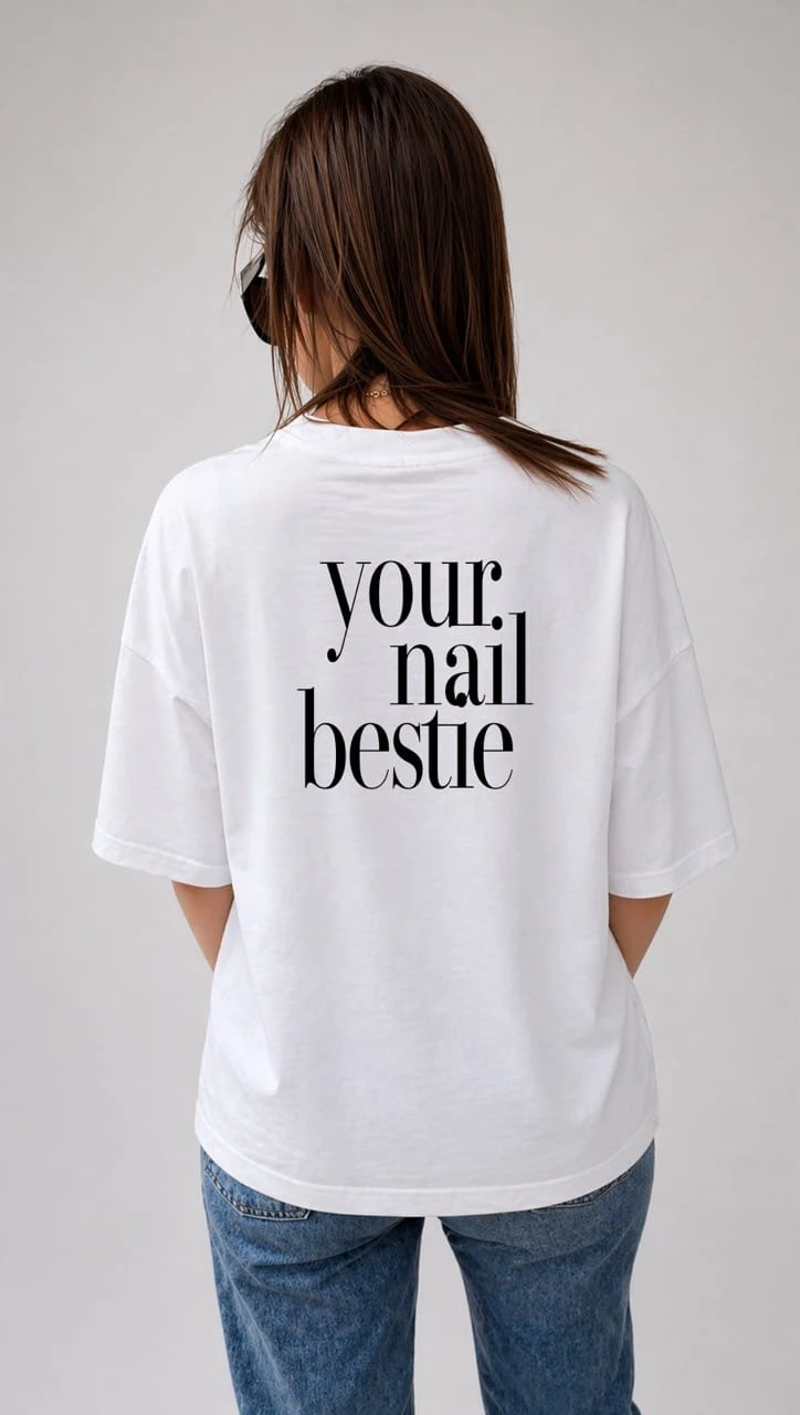 Koszulka „NAIL ARTIST & your nail bestie” to doskonały sposób, aby wyróżnić się stylem i pokazać swoją pasję do makijażu.