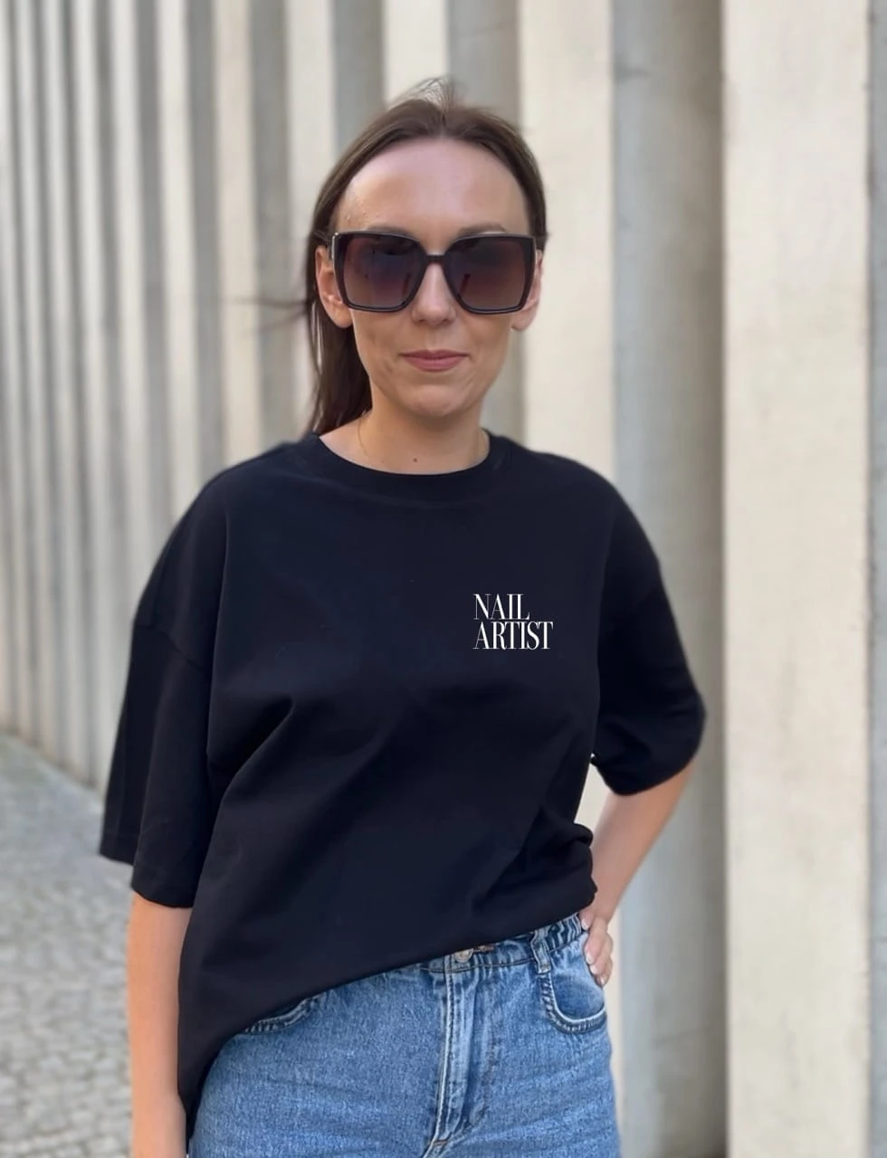 Koszulka „NAIL ARTIST & your nail bestie” to stylowa propozycja dla kobiet z branży beauty, które chcą podkreślić swoją pasję i profesjonalizm. Koszulka OVERSIZE PREMIUM.