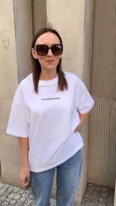 Luźny fason oraz uniwersalny design sprawiają, że koszulka doskonale sprawdzi się zarówno podczas pracy, sesji zdjęciowych, jak i w codziennych stylizacjach. To wygoda połączona z wyrazistym przekazem.