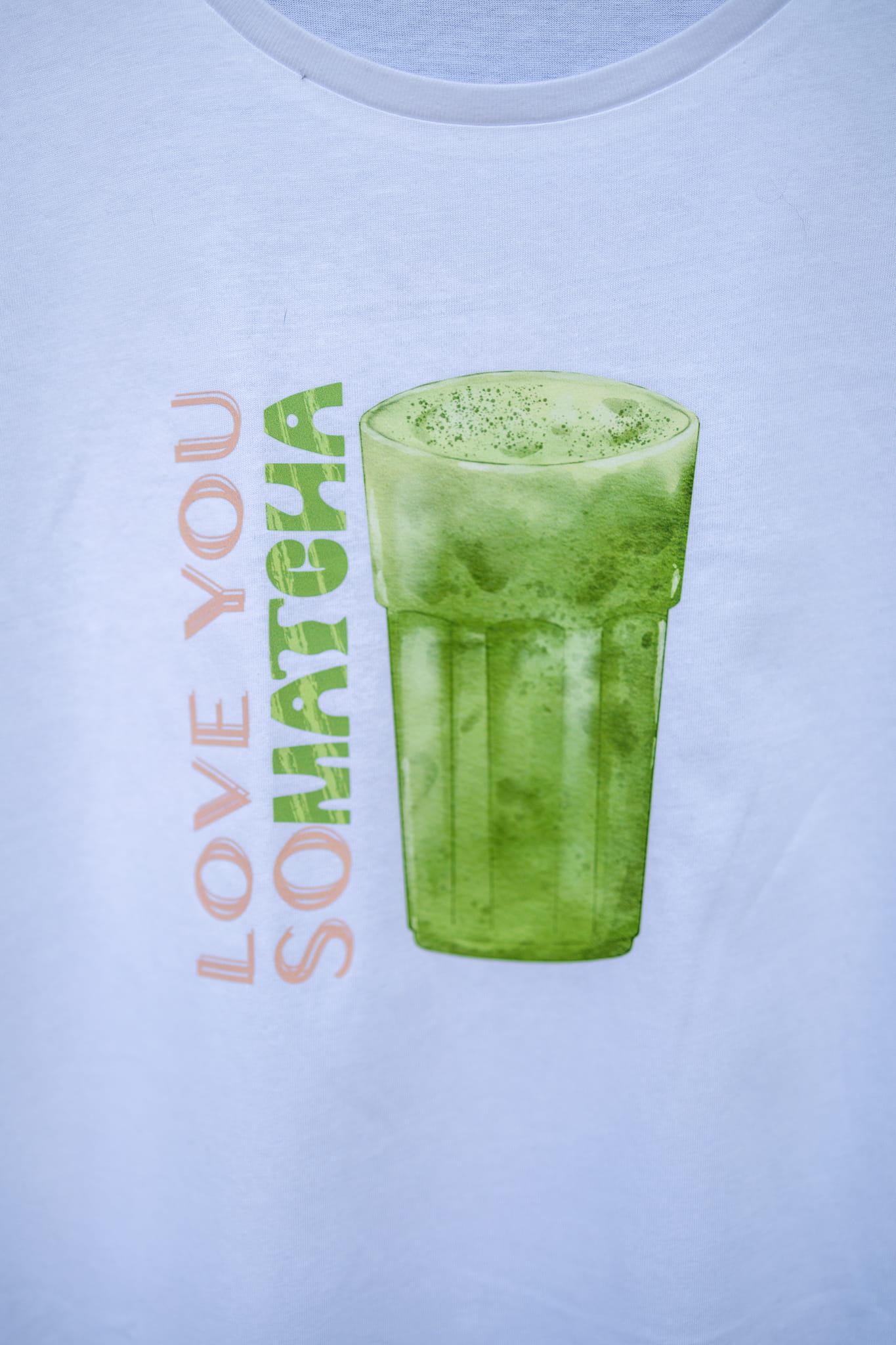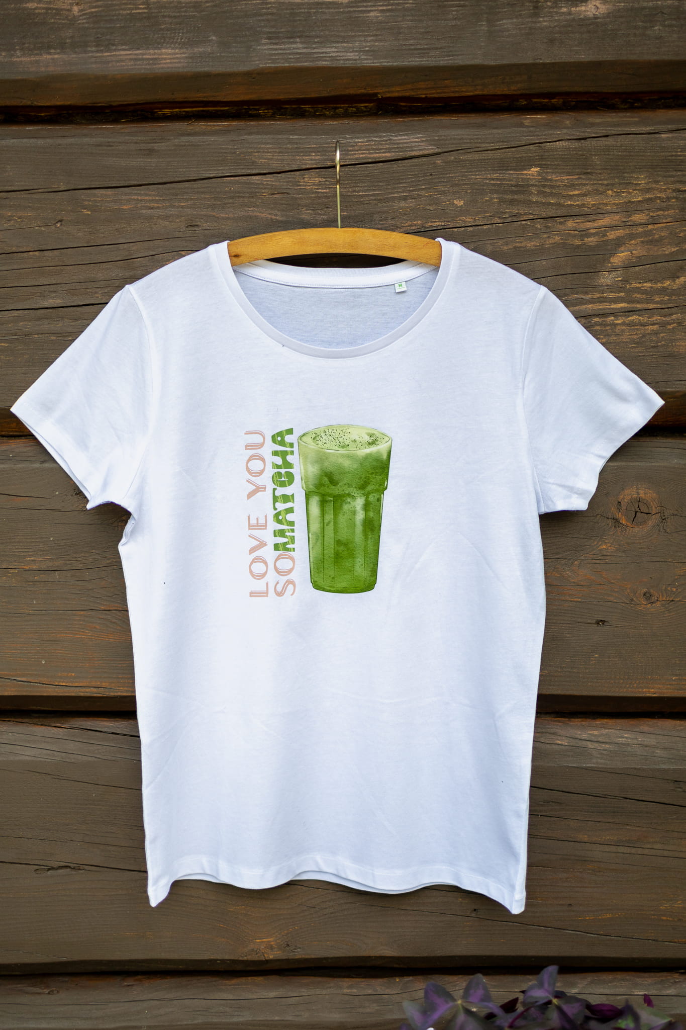 Bawełniana stylowa koszulka damska LoveU So Matcha – idealna dla miłośniczek zielonej herbaty i pozytywnej energii!