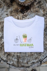 Nowoczesny nadruk DTF „In My Matcha Era” – trwały, elastyczny i estetyczny. Nie pęka i nie spiera się – nawet po wielu praniach.