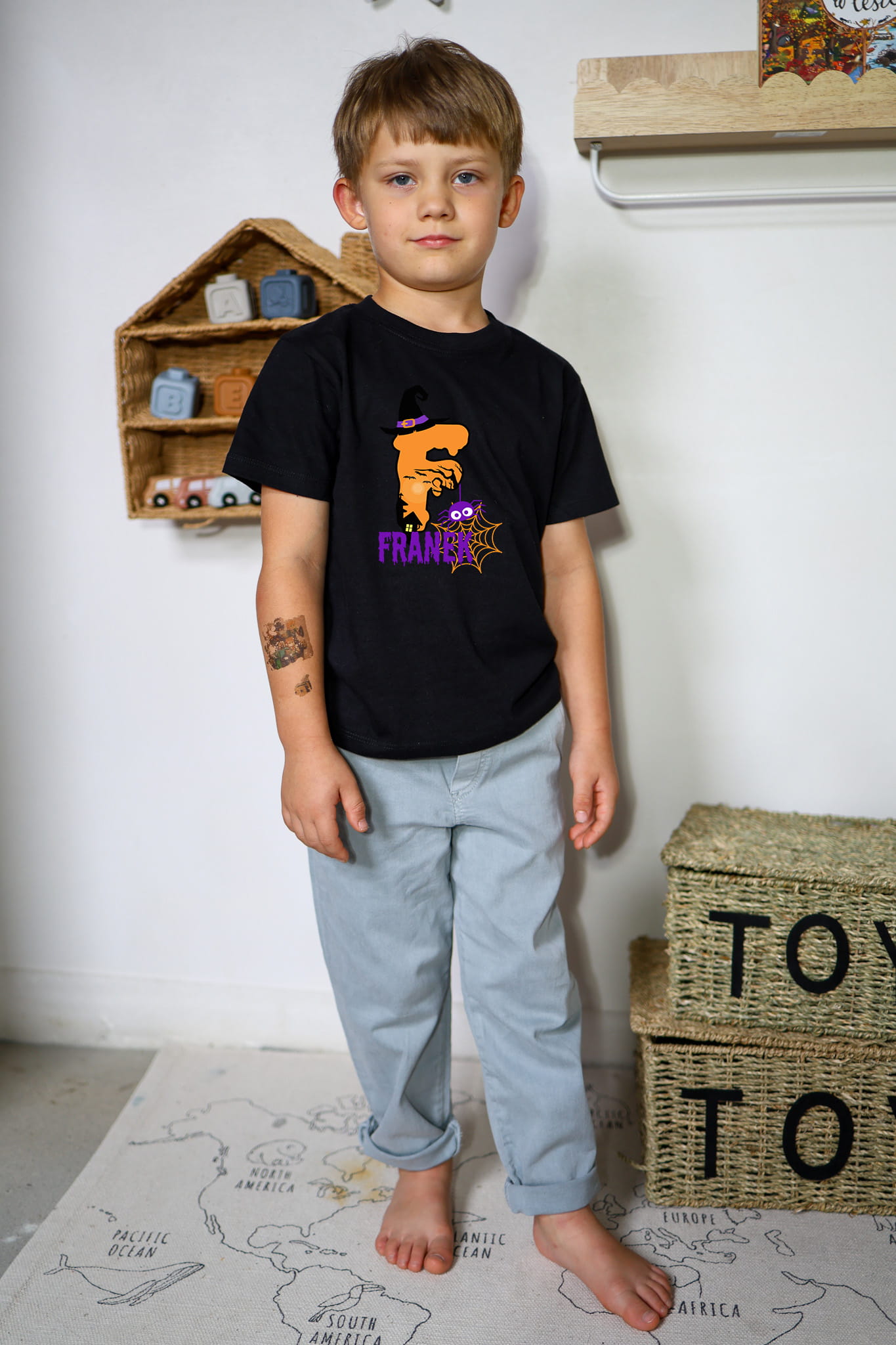 Koszulka dziecięca Halloween z personalizowanym nadrukiem – dodaj imię dziecka i stwórz wyjątkowy strój na halloweenowe zabawy!