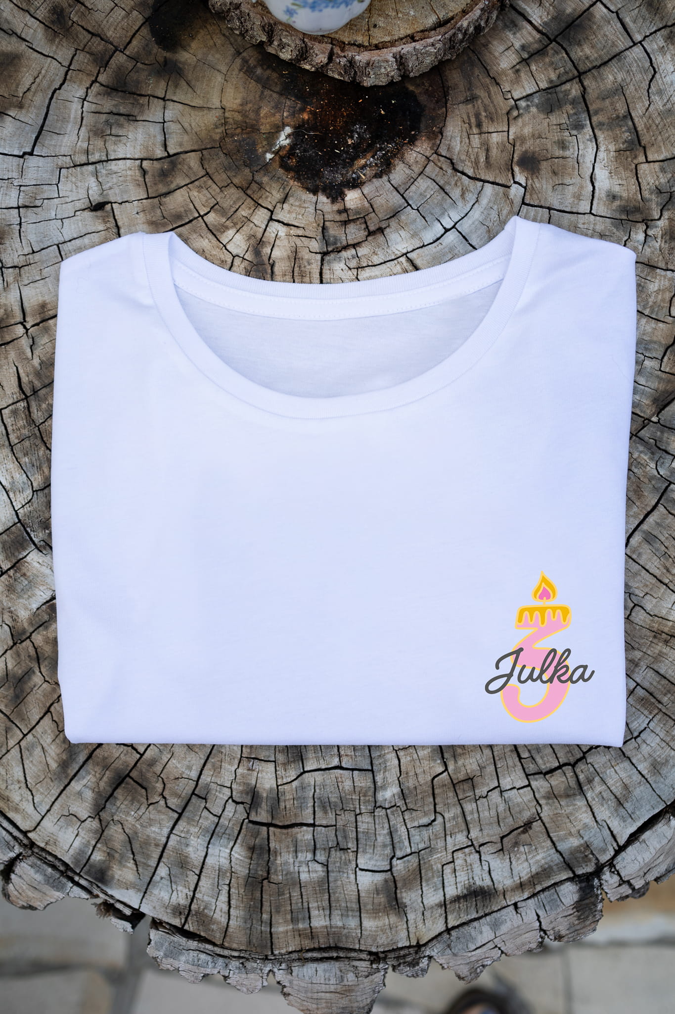 Koszulka „Urodziny z imieniem na pierś (róż)” – personalizowana