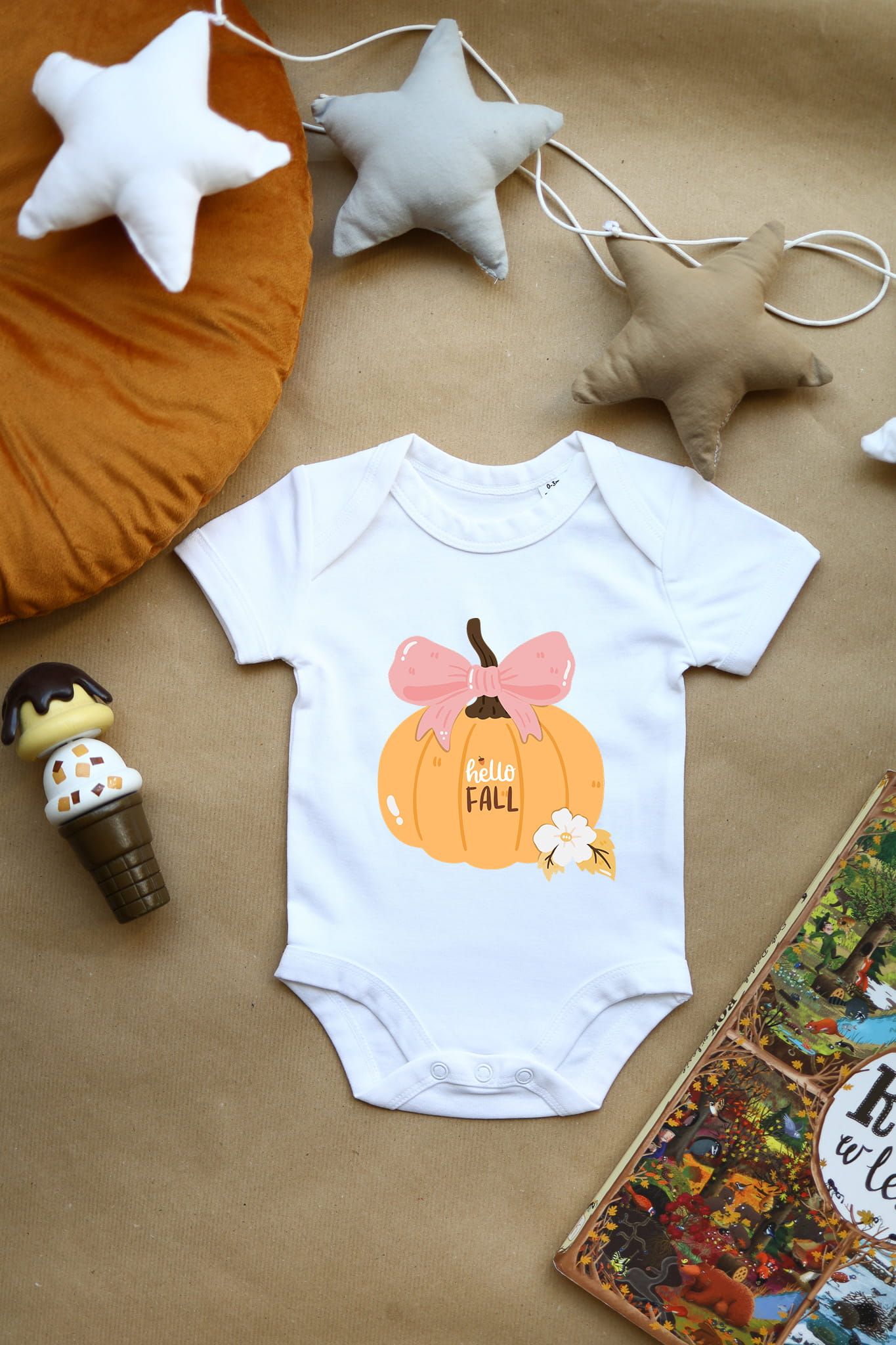 Koszulka dziecięca „Hello Fall” z dynią – idealna na jesień, wygodna i urocza propozycja dla najmłodszych.
