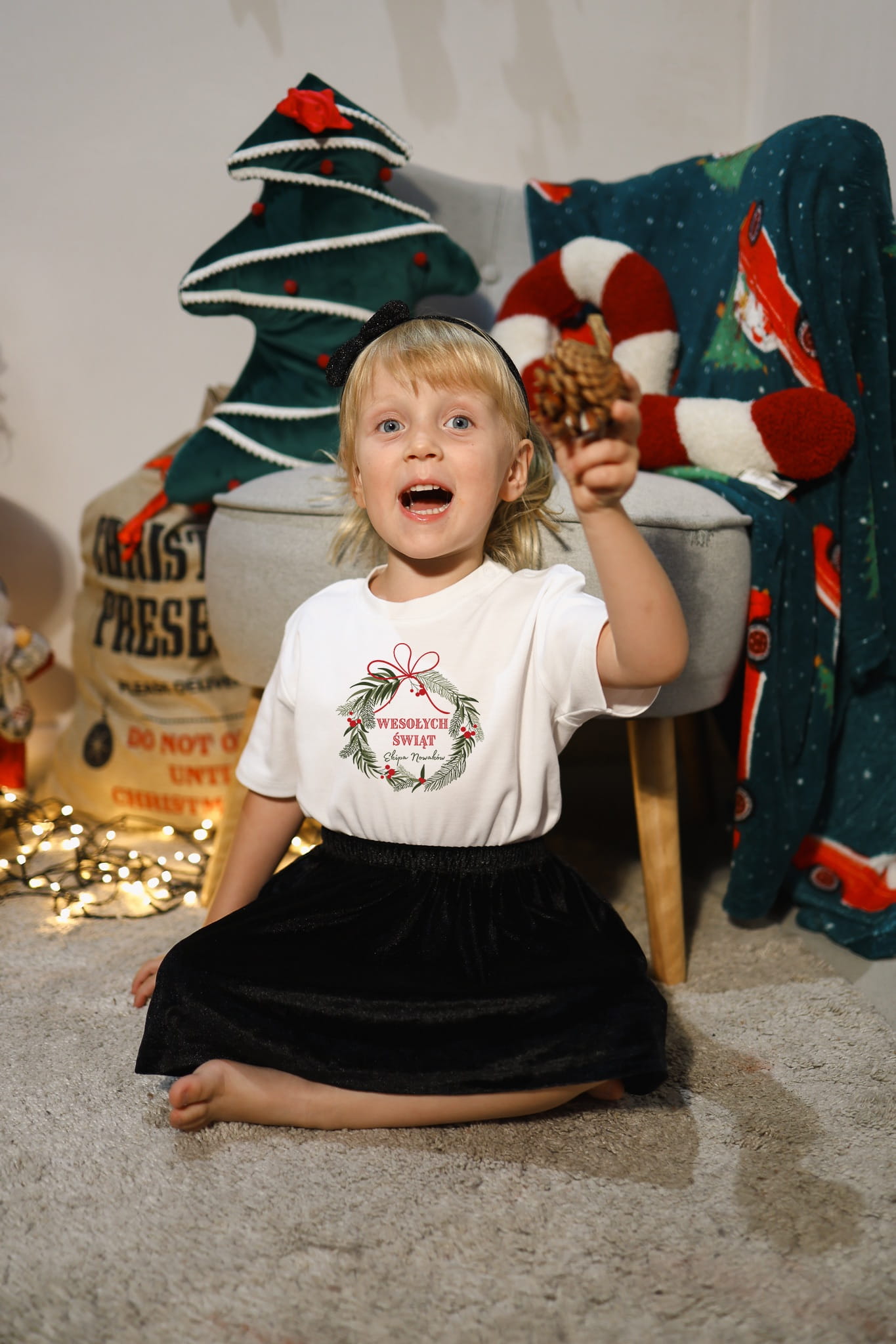 Personalizowana koszulka świąteczna dziecięca z nazwiskiem rodziny