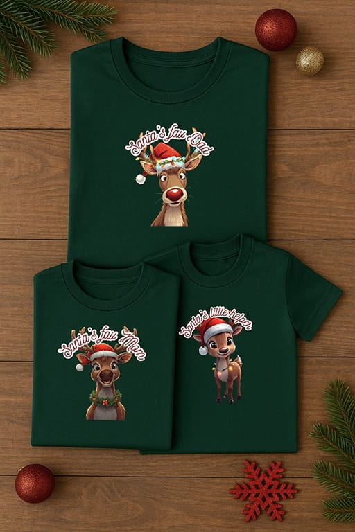 Zestaw rodzinny „SANTA FAN” to świąteczne koszulki z uroczym motywem reniferów – idealne dla całej rodziny! Stylowe, zabawne i w pełni dopasowane do świątecznego klimatu – w sam raz na rodzinne zdjęcia i wspólne świętowanie.